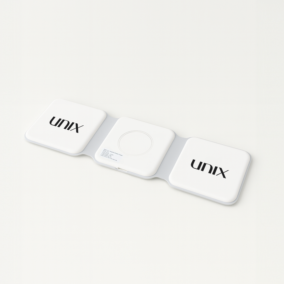 Power up without the cable chaos. The Matrix 3-in-1 MagSafe Wireless Charger keeps your phone, earbuds and smartwatch juiced up all at once, no juggling required. Fold it down for travel, flip it out on your desk and let the magnetic magic do the rest. With a smooth ABS and silicon finish and fast-charging options up to 15W, it’s a clever bit of kit that pulls its weight. Presented in a black box with logo.