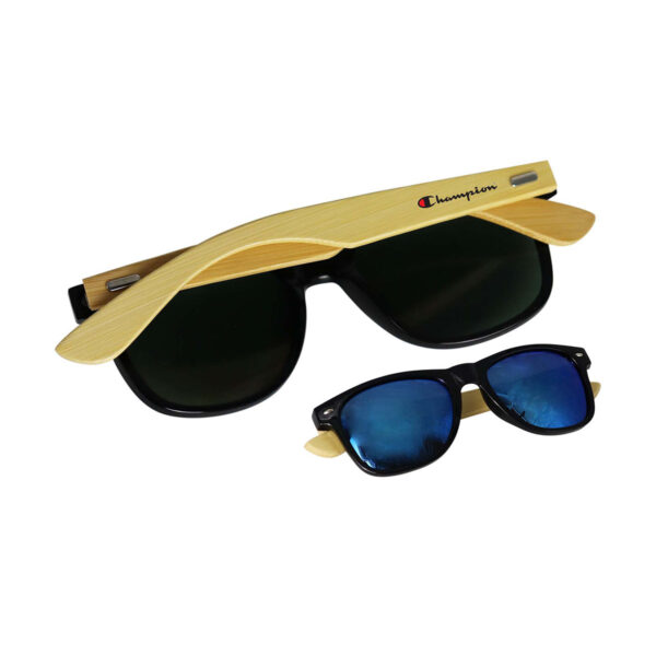 Step into summer with the Bamboo Sunglasses, featuring a bold blue metallic lens coating and natural bamboo arms. Add your branding to the arms and enjoy the sun while keeping your eyes protected.